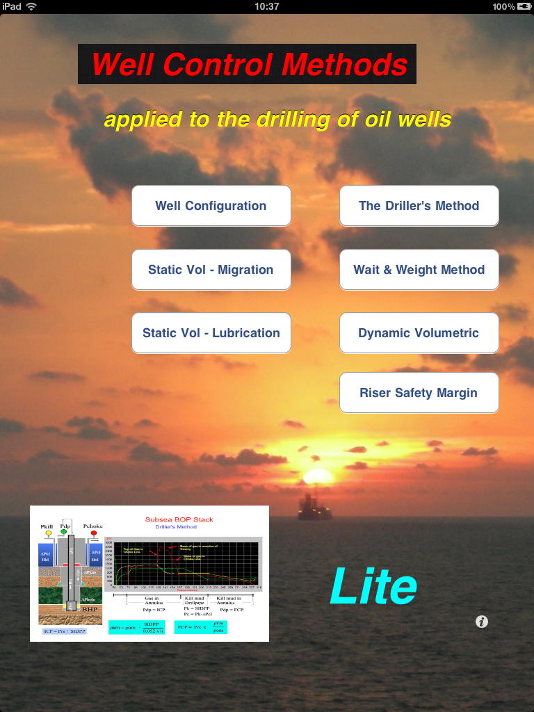 This application uses the basic calculations of the methods to control oil wells after the occurrence of kick during drilling operations on floating platforms and land rigs.